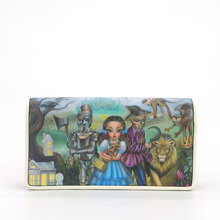 Wizard of Oz wallet in vinyl. The artwork shows all the major characters in the beloved story of the Wizard of Oz.