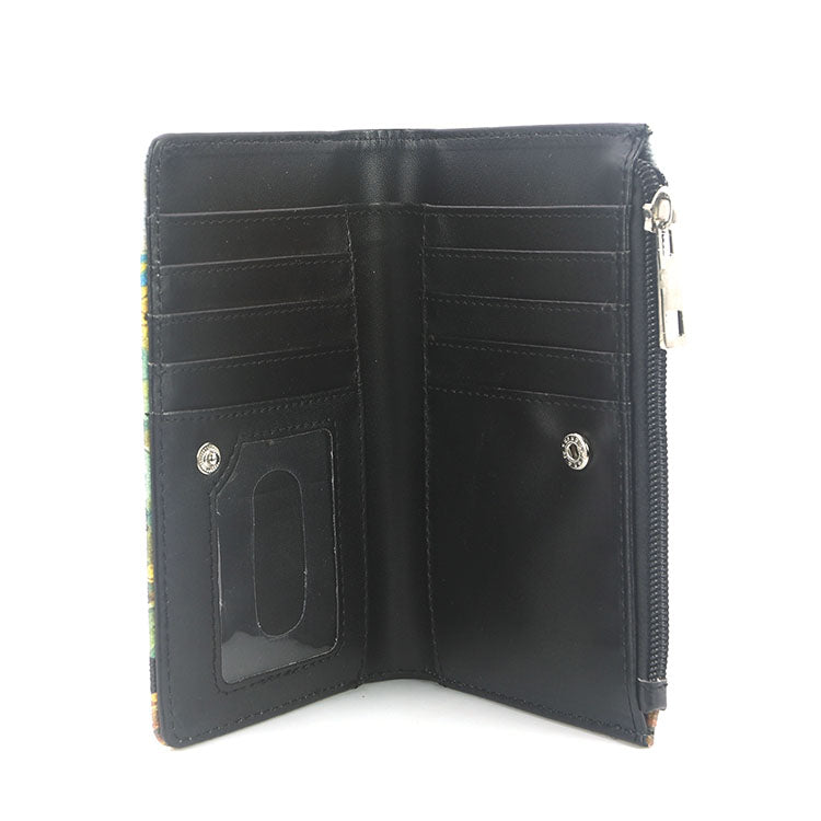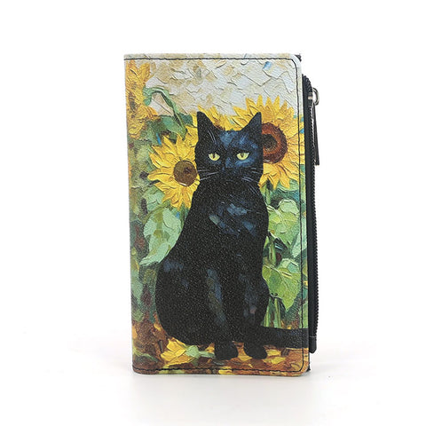 The Black Cat Sunflower Wallet features a black cat motif paired with sunflower artwork, this wallet delivers strong visual contrast and artistic detail while maintaining a clean, functional silhouette. Crafted from high-quality vinyl, it offers durability, structure, and a smooth finish suitable for daily use.